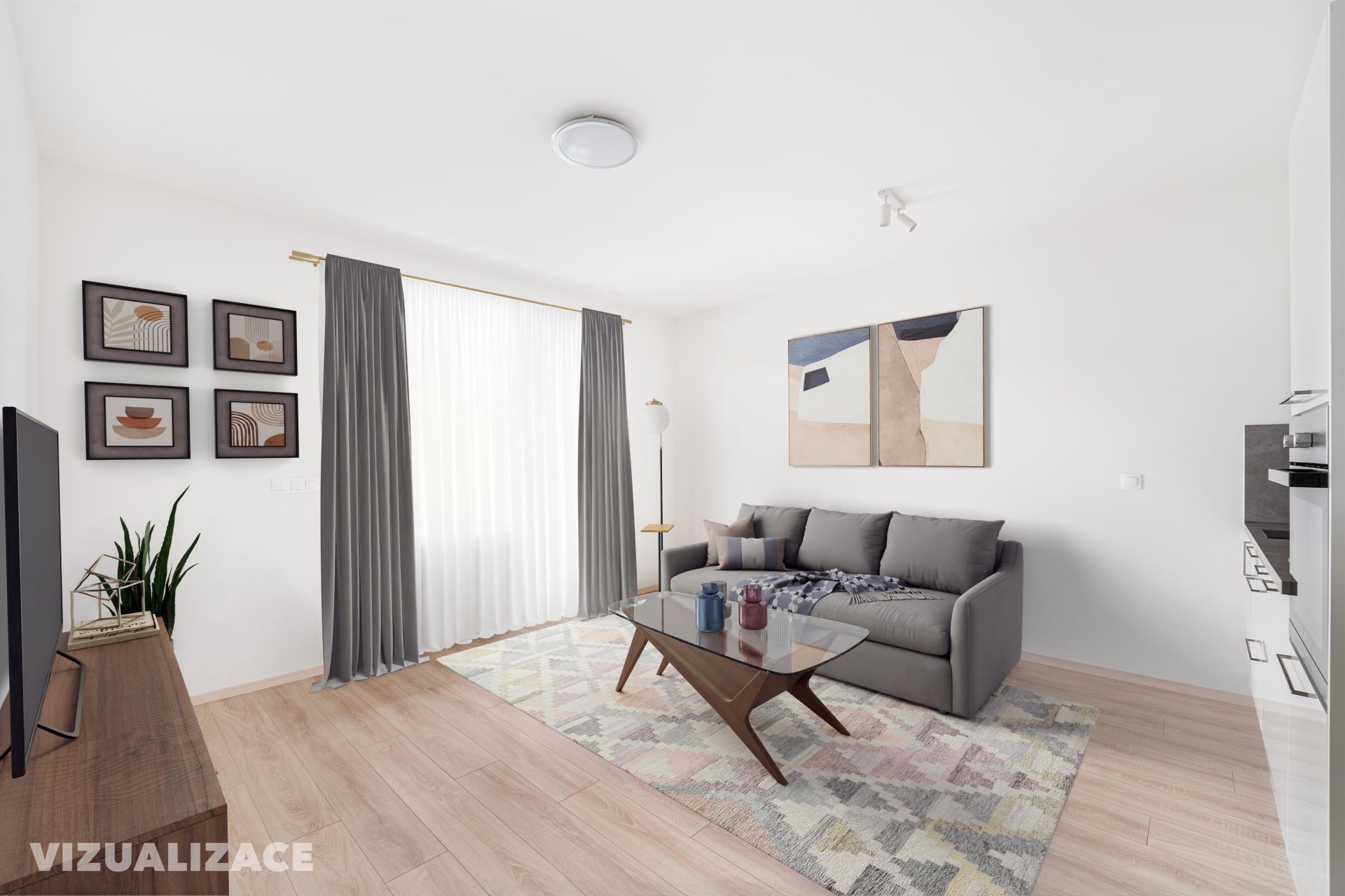 Byt působí klidně a čistě. Stačí si ho doladit podle sebe – pár rostlin, polička s knihami, oblíbený hrnek… a během chvilky se tu cítíte jako doma.